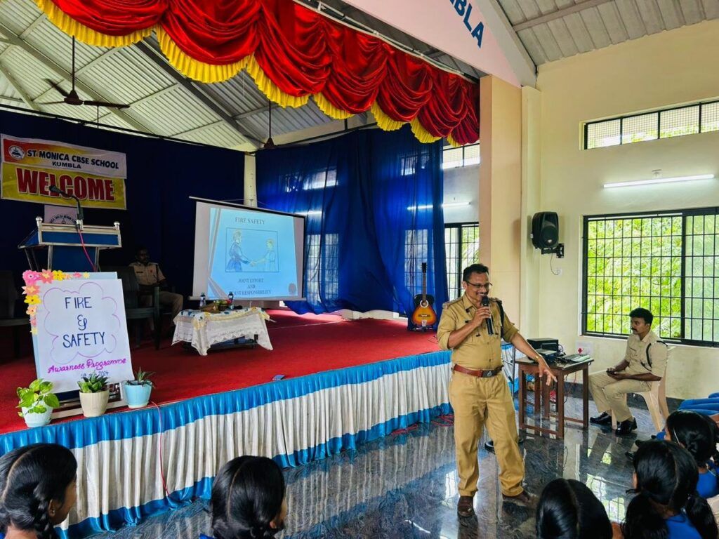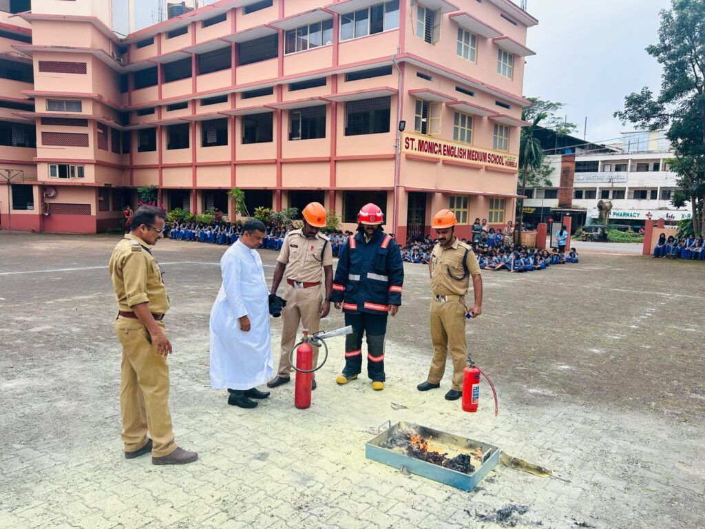 St. Monica English Medium School (CBSE) organized a comprehensive Fire and Safety Rescue Programme on August 19th, 2024, at the school auditorium. The event aimed to raise awareness among students about fire safety, emergency response, and life-saving techniques.