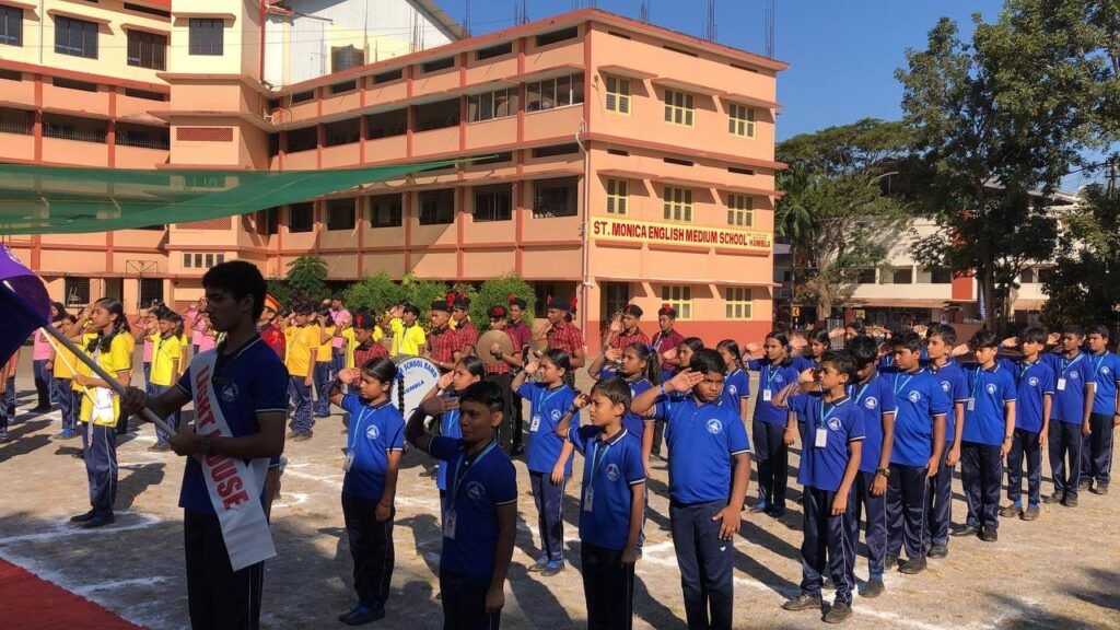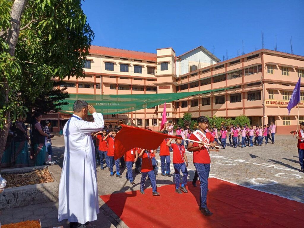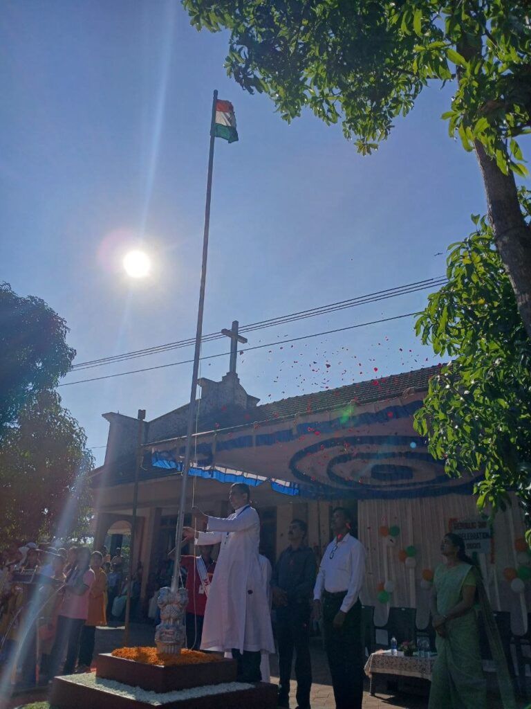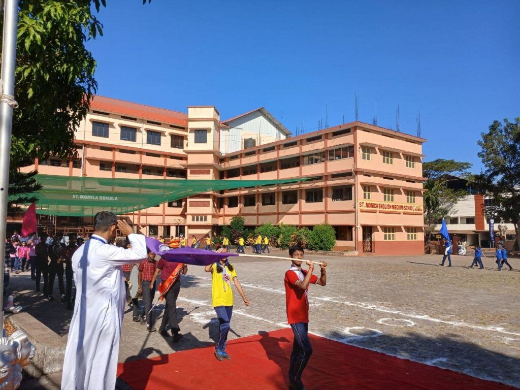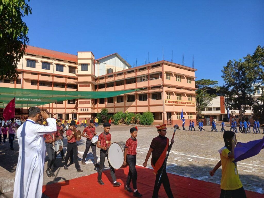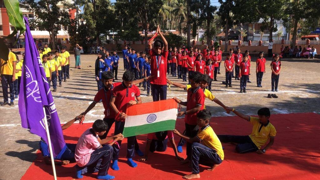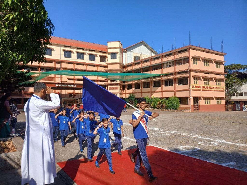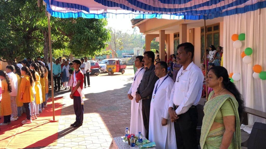 Republic Day celebrated on 26th January 2025 at 9:15 a.m. in our school premises. The program began with a prayer song Led by the school choir. Bhakti from class 7th welcomed the gathering. The importance of celebrating Republic Day shared by Khadeeja Shaza from class 4. Flag was unfurled by our manager Rev. Fr Melwin D’Souza along with the Principal Sr Ancy Mathew, Vice Principal Fr Suraj Joseph Lobo and other dignitaries. After the flag hoisting National Anthem ‘Jana Gana Mana’ and Jhanda Uncha was sung by the school choir. There after, march past was performed from class 4 to class 8 by the squad students. Patriotic songs where sung in different languages. After that mass drill was performed by the students.