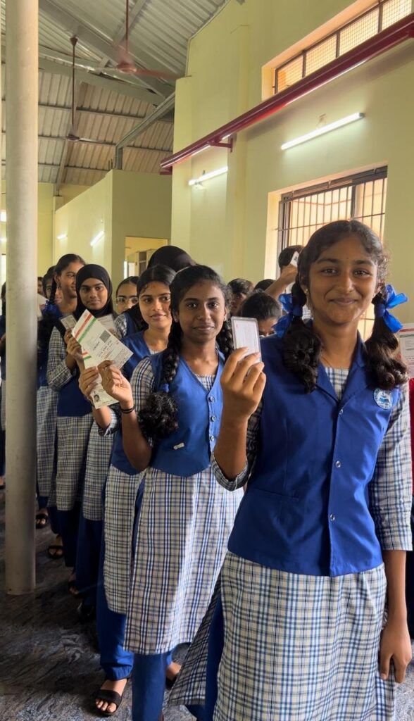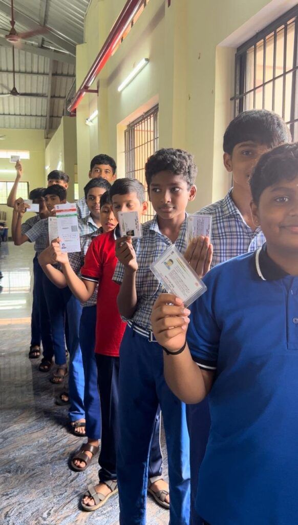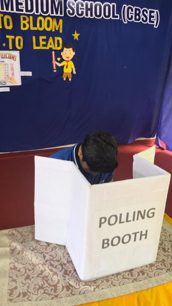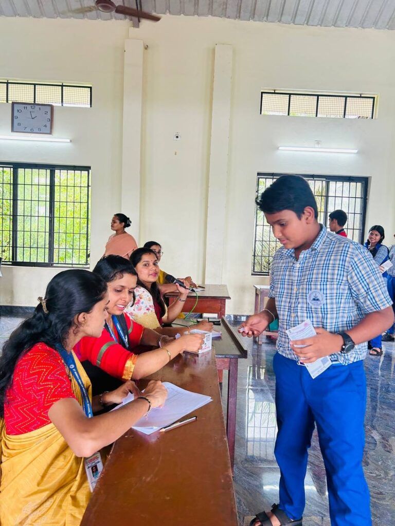 Strict voting rules and guidelines were followed to ensure a smooth and fair election process. Students voted in class-wise order under the supervision of teachers according to unique vote ID code. Each student’s identity was verified through Aadhaar before voting digitally. Finger marking ensured transparency and uniqueness of each vote.