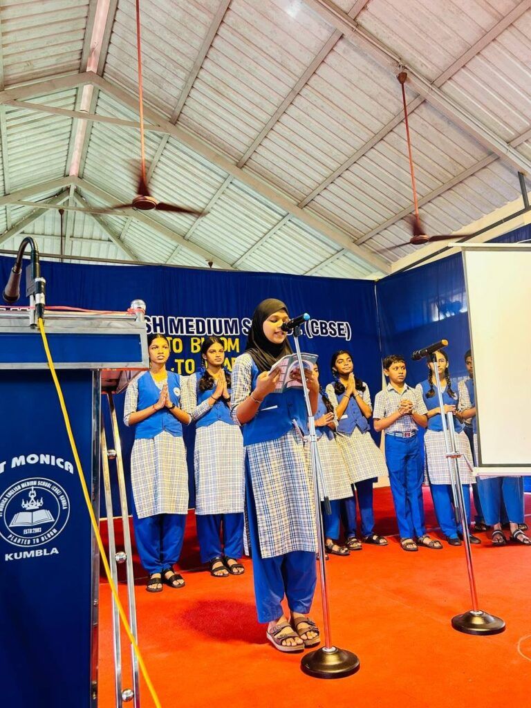 The highlight of the programme was the Candidates’ Speeches, where nominated students — Pradhan Kumbla ,Afraz, Dhanvi, Vaishnavi M. Acharya (Grade X) and Shanvi, Vriddhi, Bhuvith, Thanish (Grade IX) — shared their vision and views for the school.