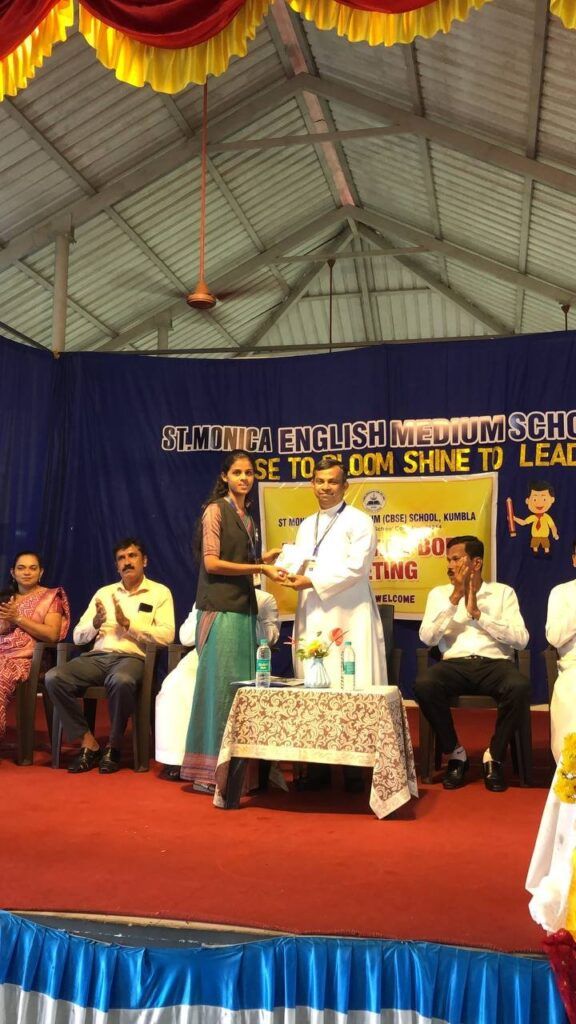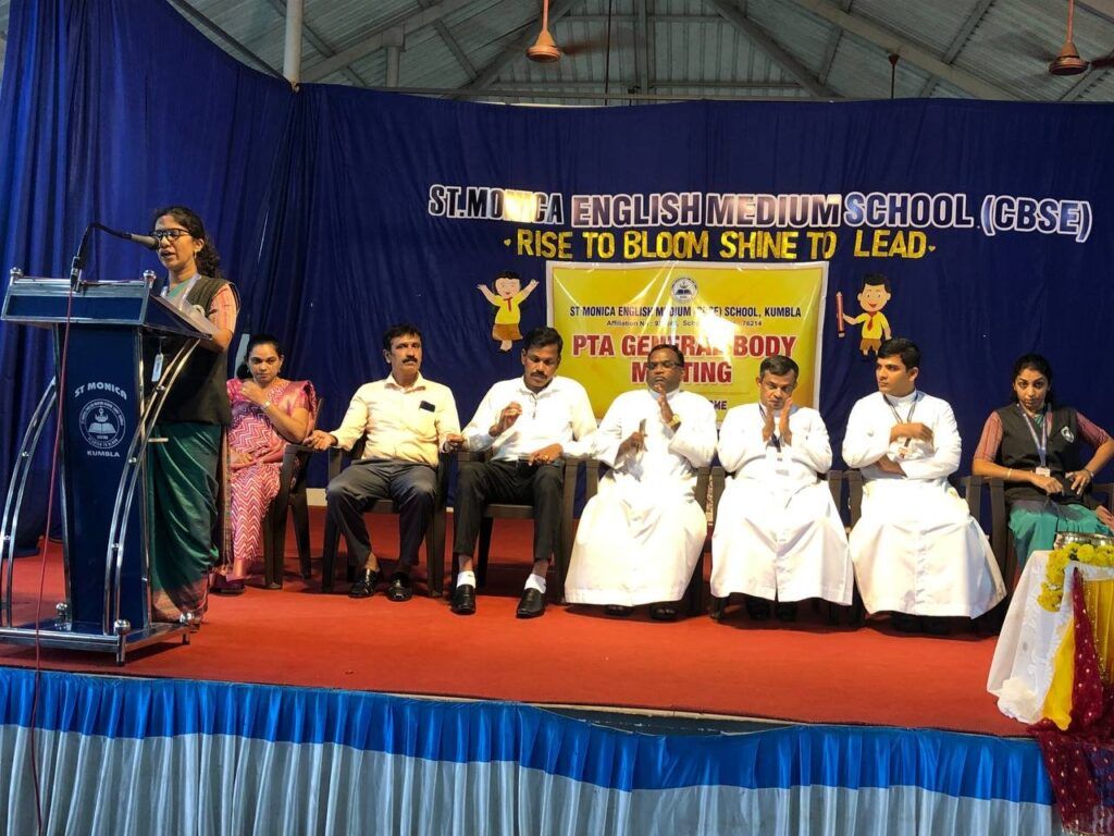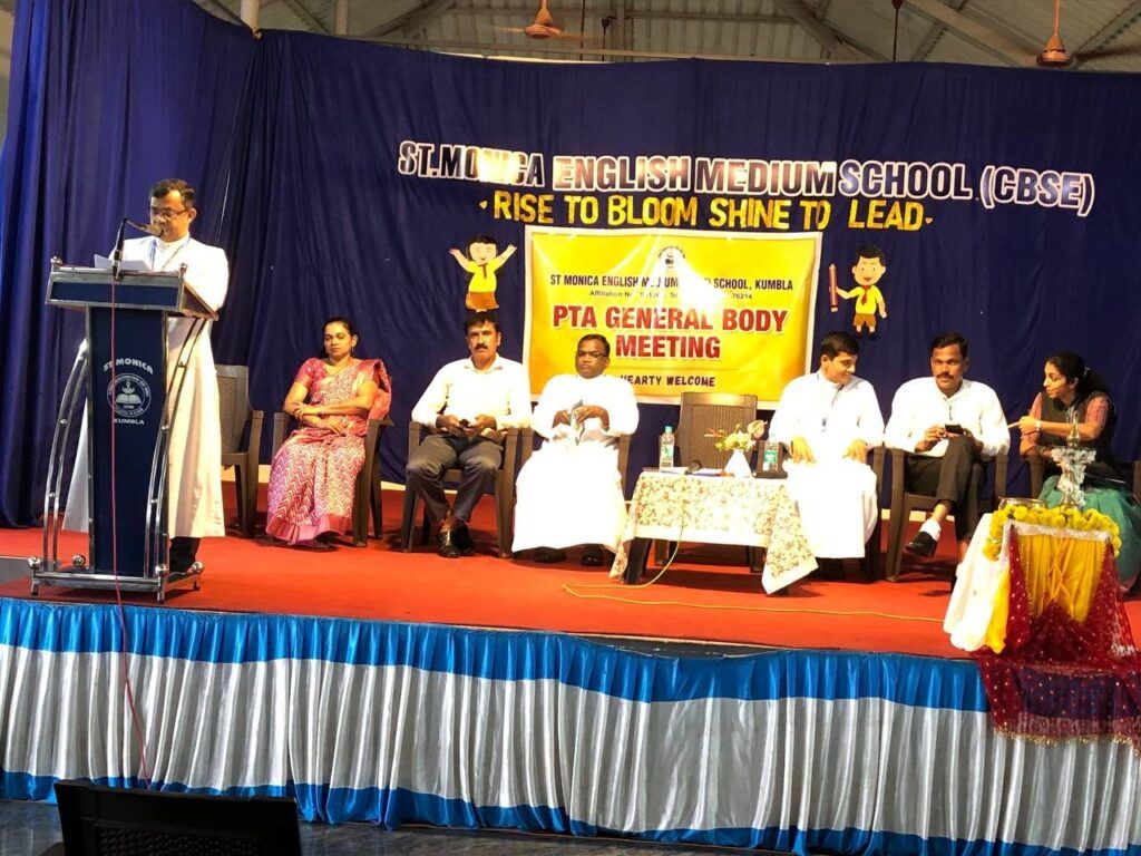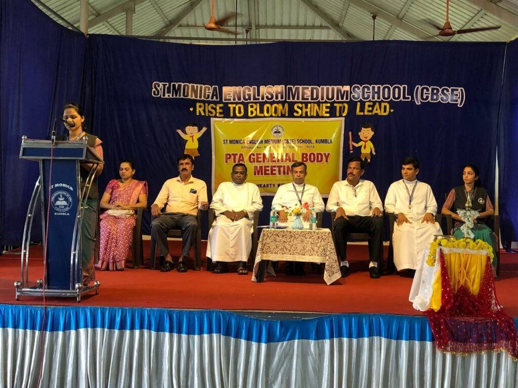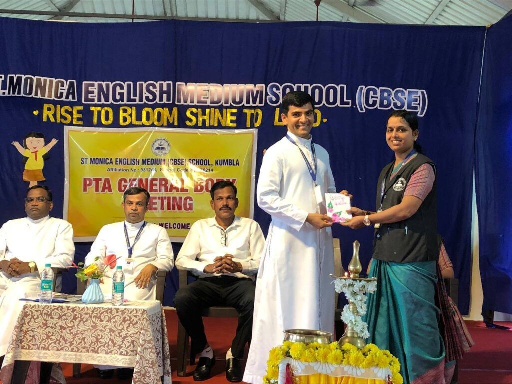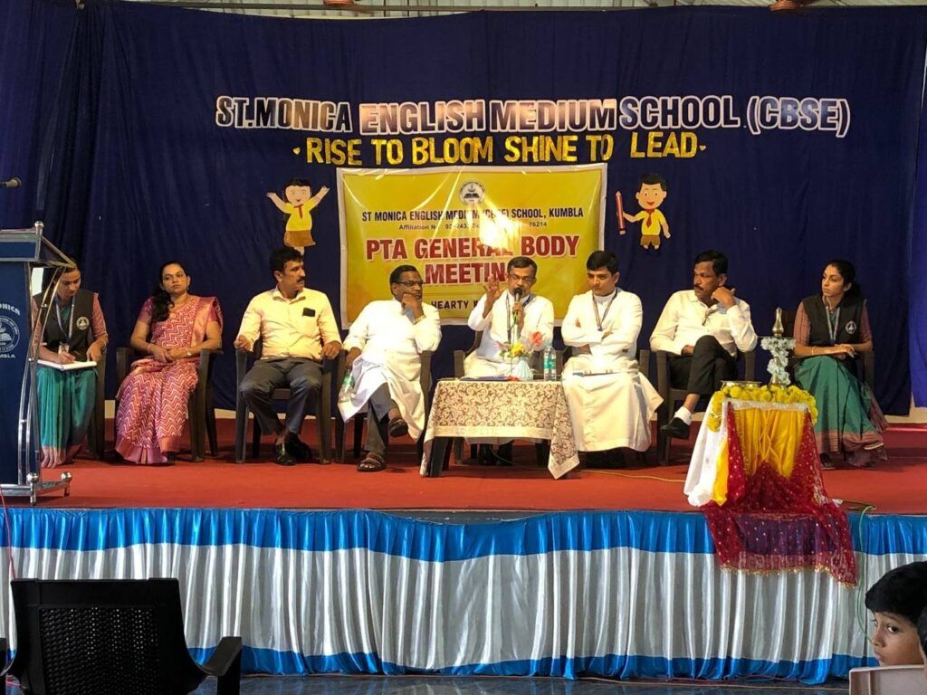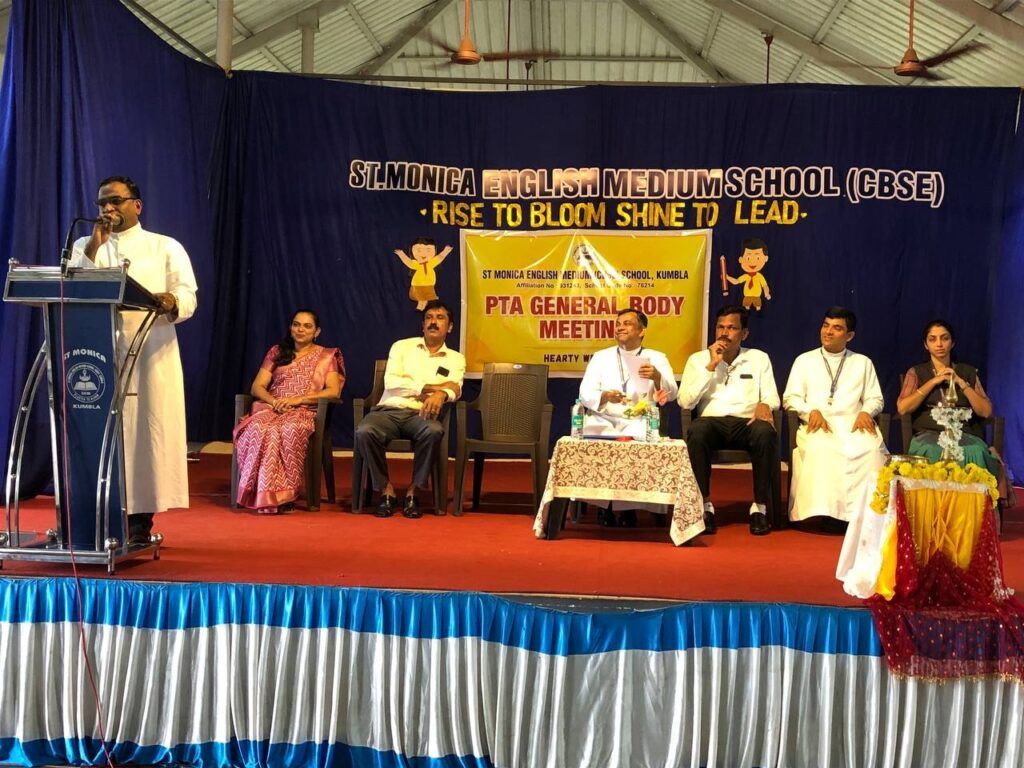 The Parent –Teacher Association General Body meeting of St Monica English Medium School for the academic year 2025-26 was held on 19-07-2025 at the school auditorium. The programme commenced with a grand entrance of the Chief Guest Rev. Fr K C Mathew, Principal of Don Bosco Central School, Manjeshwar, Manager Rev. Fr Melwyn D’Souza, Vice-Principal Fr. Suraj Joseph Lobo, Academic Secretary Mrs. Archana, PTA Vice- President Mr. Ramesh Rai, Parish Pastoral Council Vice-President Mr. Raju Stephen D’Souza, Secretary Mrs. Lydia to the venue.