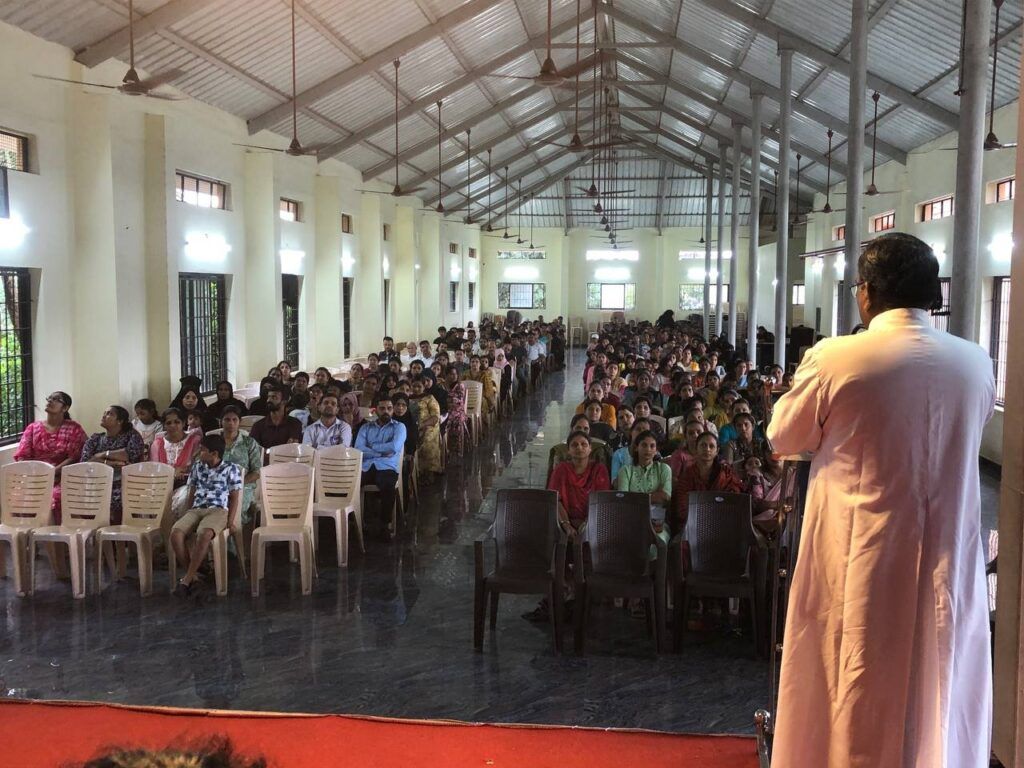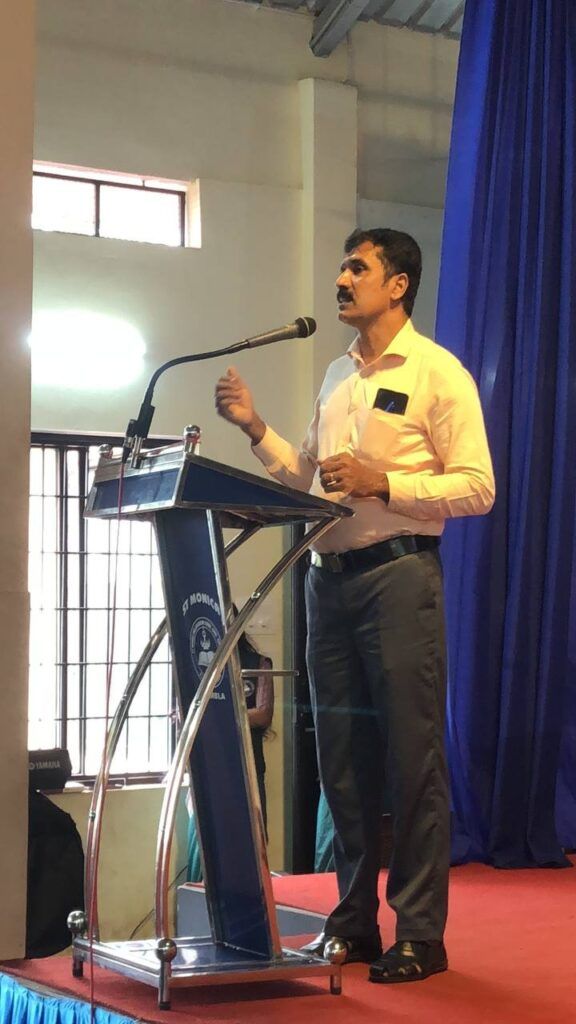 The dignitaries officially released the school magazine ‘St Monica Fountain’ 2024-25. Following this, Vice-Principal Fr. Suraj Joseph Lobo introduced the chief guest Fr. K C Mathew to the audience. The esteemed guest Fr. K. C Mathew took the stage and addressed the audience on the topic of ” Better Parenting”.