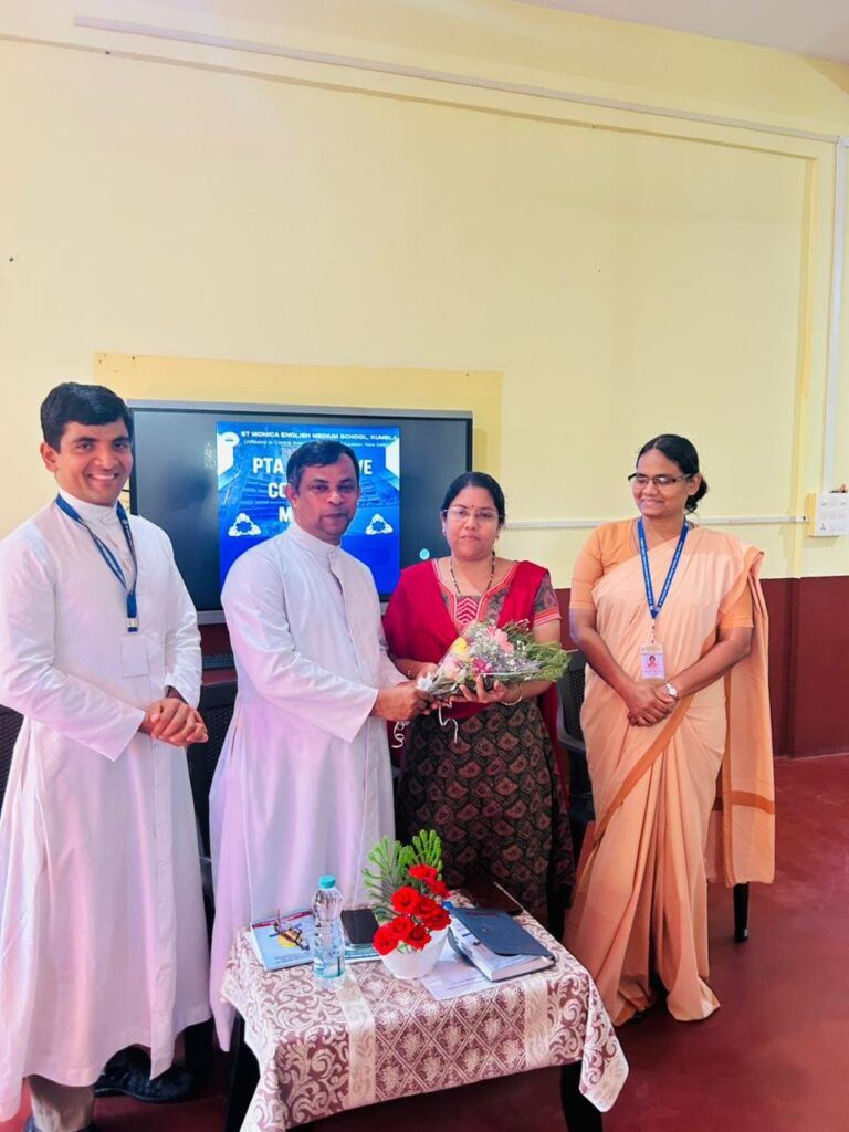 The first PTA Executive Committee meeting of St Monica English Medium School for the academic year was held on August 4th at 3:30 p.m. in the Audio-Visual Room. A total of 24 members attended the meeting, including the Manager Rev. Fr Melwyn D’Souza, Principal Sr Sharmila Pandranki, Vice Principal Rev. Fr Suraj Joseph Lobo, staff representatives, and parent members.