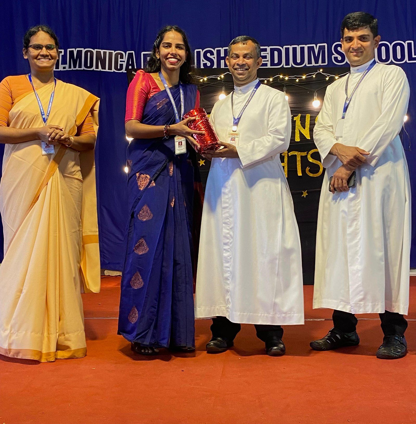 The celebration Commenced with a prayer led by the students, followed by a welcome address. To mark the auspicious beginning, the dignitaries – Manager Rev. Fr Melwyn D’Souza, Principal Rev. Sr Sharmila, and Vice Principal Rev. Fr Suraj Joseph Lobo – lighted the ceremonial lamp.