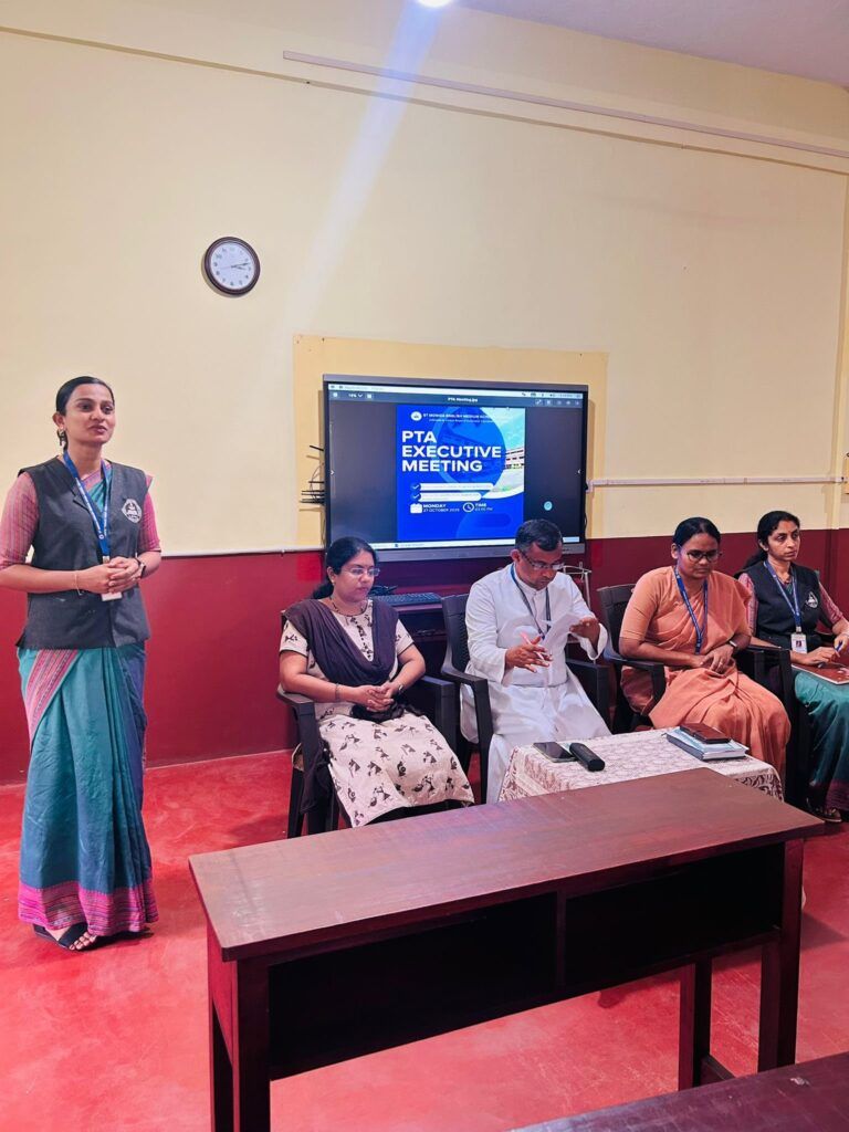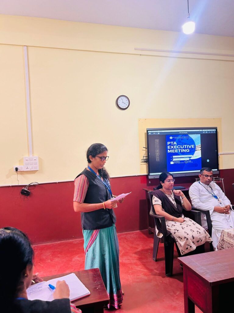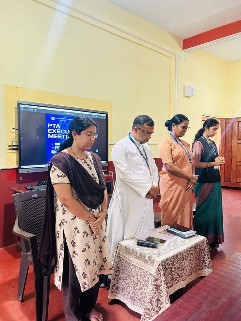 The meeting began with a prayer led by Rev. Fr. Melwyn Dsouza, the Manager of the school, followed by a welcome address by Mrs. Keerthy, the staff representative. The minutes of the previous meeting were read by Mrs. Chandrakala, the Joint Secretary.