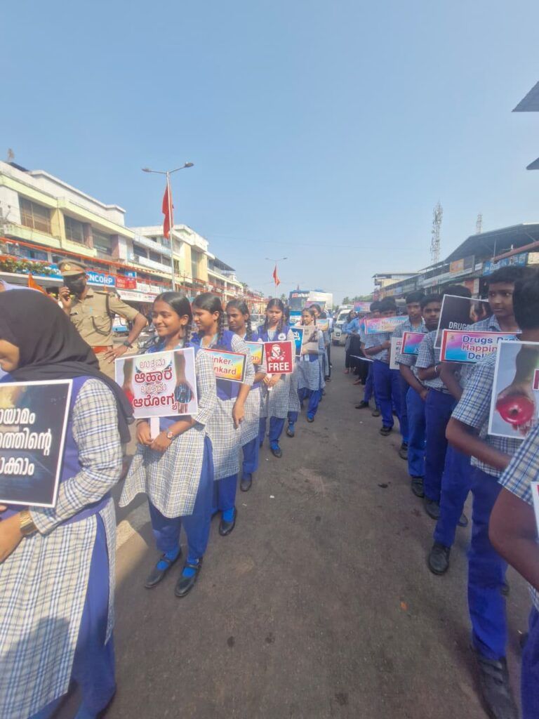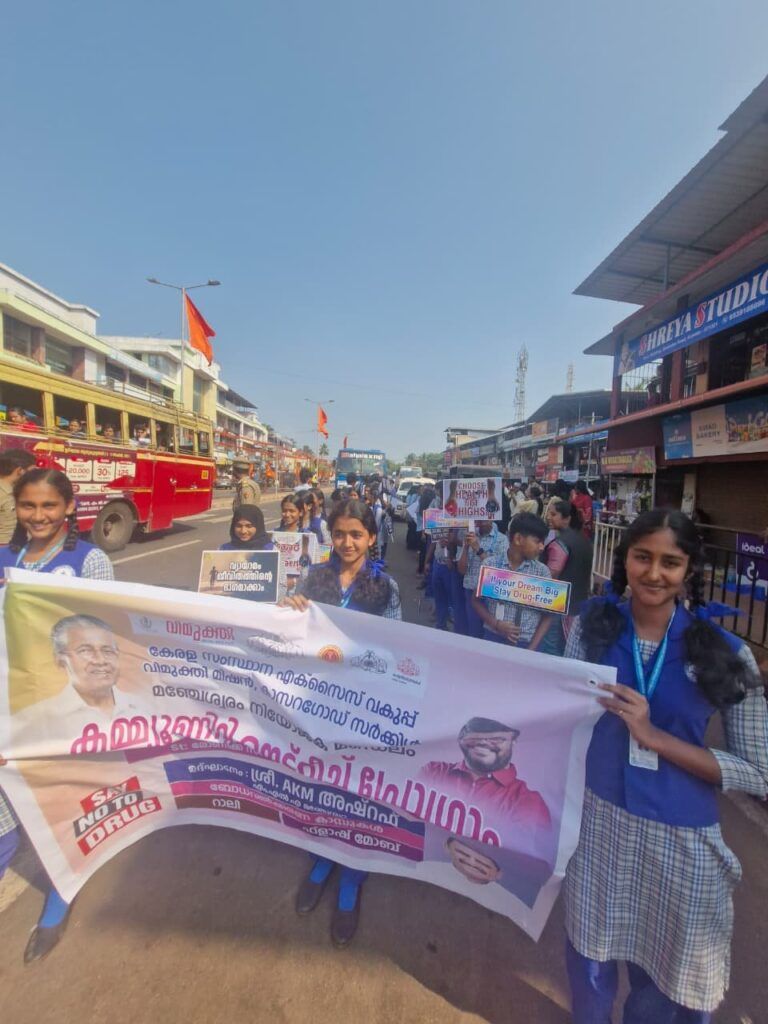 The “No to Drugs” campaign, conducted by the Excise Department, was held on 19th January 2026, beginning with a flash mob at Kumbla Town to raise public awareness about the harmful effects of drug use. This was followed by a rally carrying banners and placards with anti-drug messages, which proceeded to St Monica English Medium School, Kumbla. A large number of participants, including school students, college students, and ASHA workers, showed strong community support for the initiative.